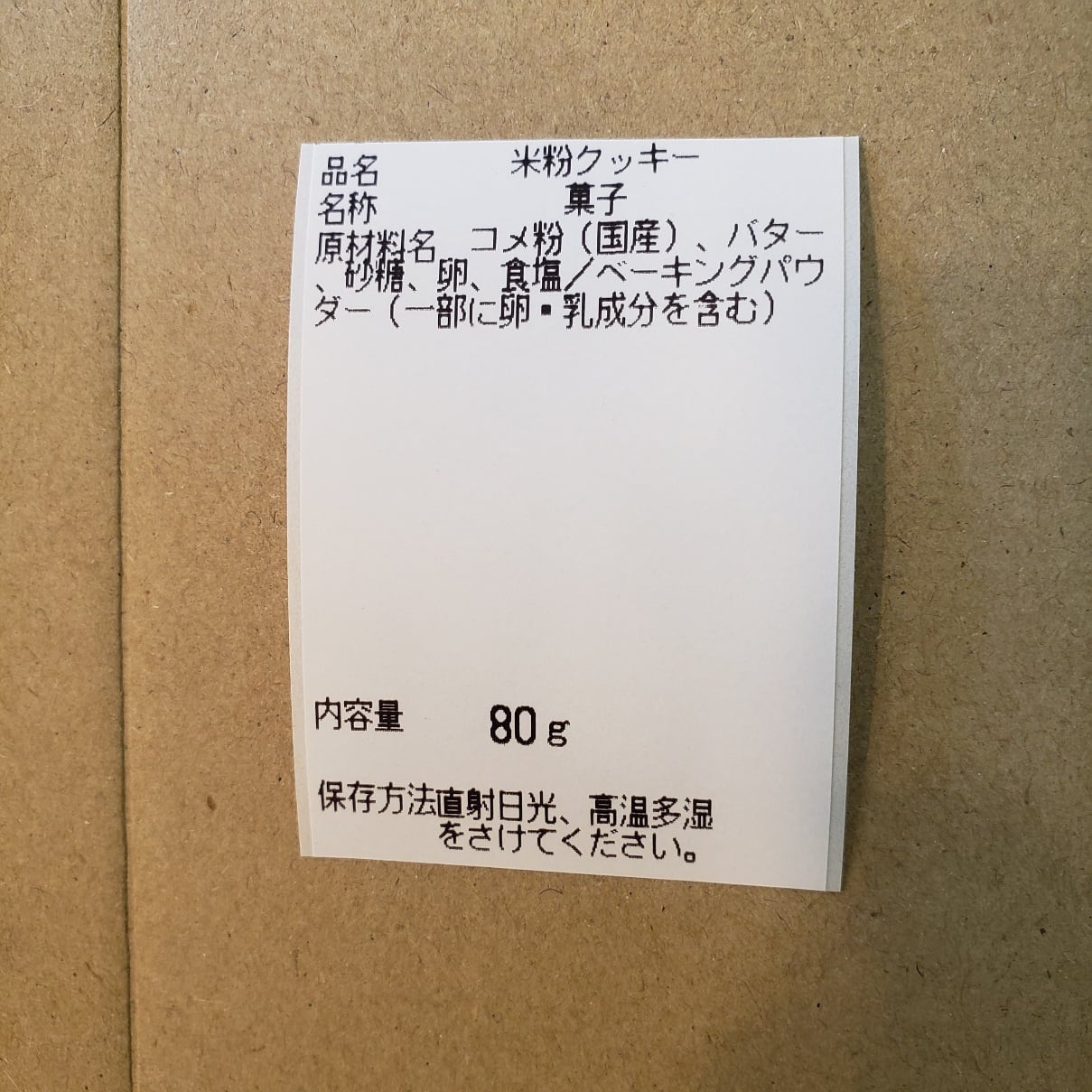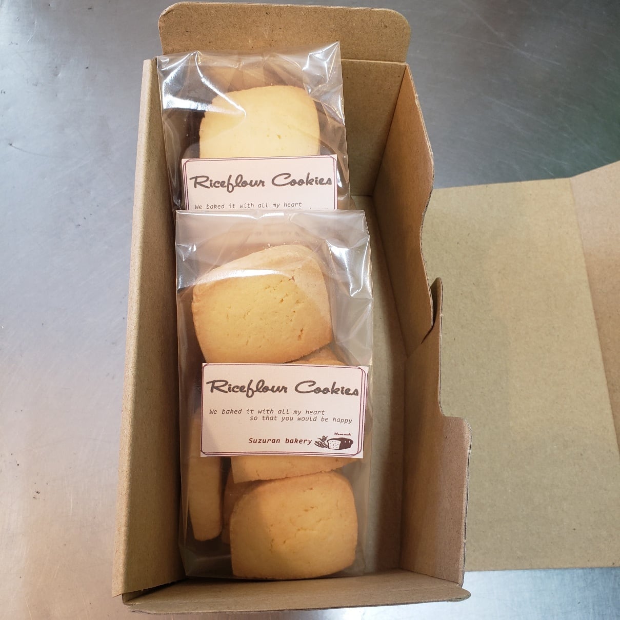 米粉を100%使用した米粉クッキーです。ホロホロとした食感で女性に人気があります。